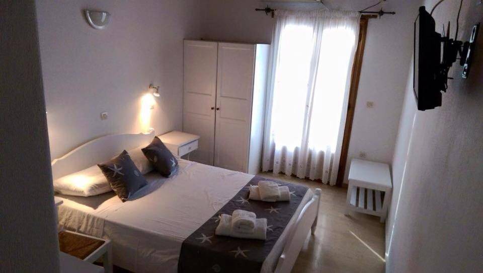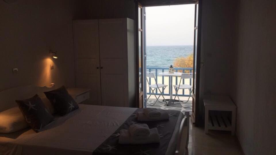 Air-conditioned room with a TV, refrigerator and a balcony with views of the Aegean Sea.